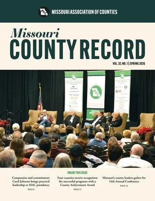 The Missouri County Record is a magazine published quarterly by the Missouri Association of Counties, a statewide lobbying group headquartered in Jefferson City, Mo. The publication generally runs 32 pages in length, and it is distributed to more than 1,400 subscribers (including county elected officials who purchase supplies, equipment, and services for Missouri county governments; all state administrative, commission, and department directors; members of the state General Assembly; as well as national affiliate associations.